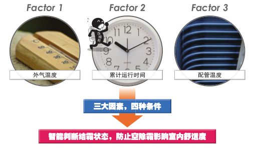 R2冷暖同步多聯機根據時間、配管溫度、累計運行時間三個關鍵因素對除霜必要性能進行智能判斷。