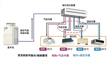 雙管式實現壓縮機無需停機,切換制冷制熱模式,避免了切換過程中房間產生不舒適感覺。