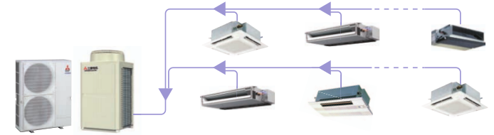 室內機通過分支管(或分支集管)連接至室外機,配管簡單方便。