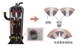 三菱電機全新推出的YRJC菱睿上出風系列空調機組使用了改進的渦旋式壓縮機,在原有大容量低壓外殼結構的基礎上,結合了三菱電機專利的“龍骨馬達”集中式繞組方式。 |